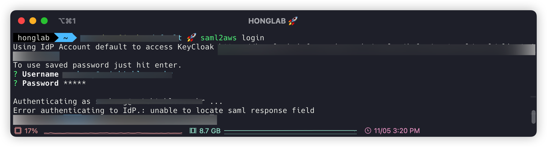 $ saml2aws login