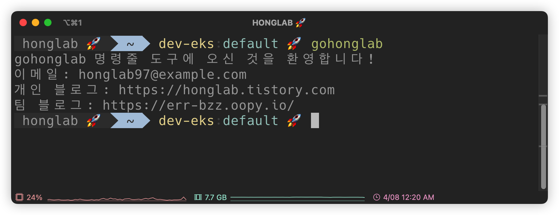 fmt.Println("gohonglab 명령줄 도구에 오신 것을 환영합니다!")