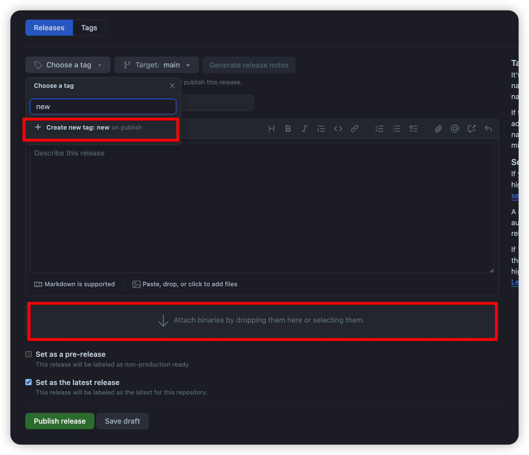 release를 새로 만들자. 태그도 새로 만들고..