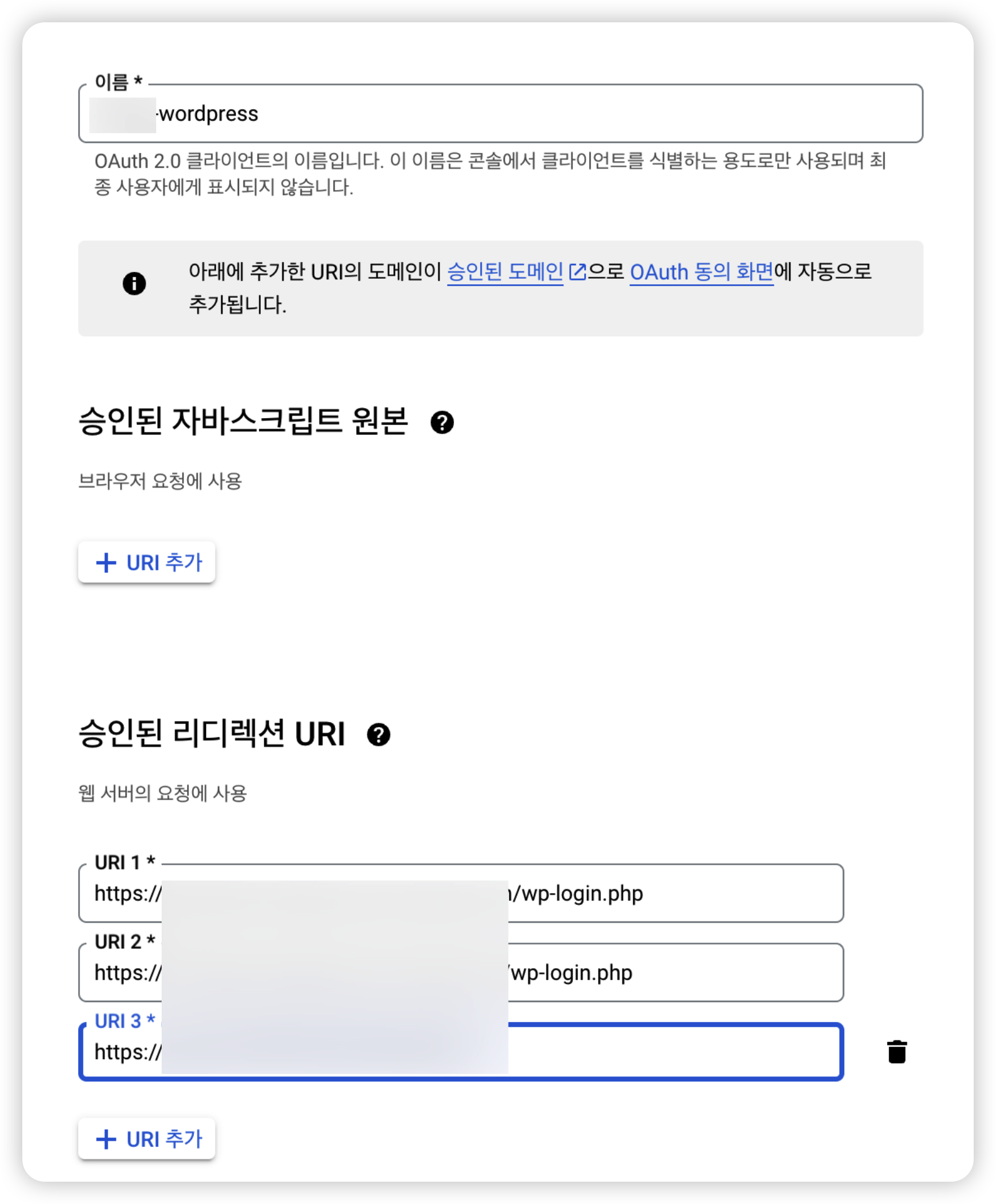만 등록하면 된다. (난 wordpress가 여러개라 여러개 등록함)