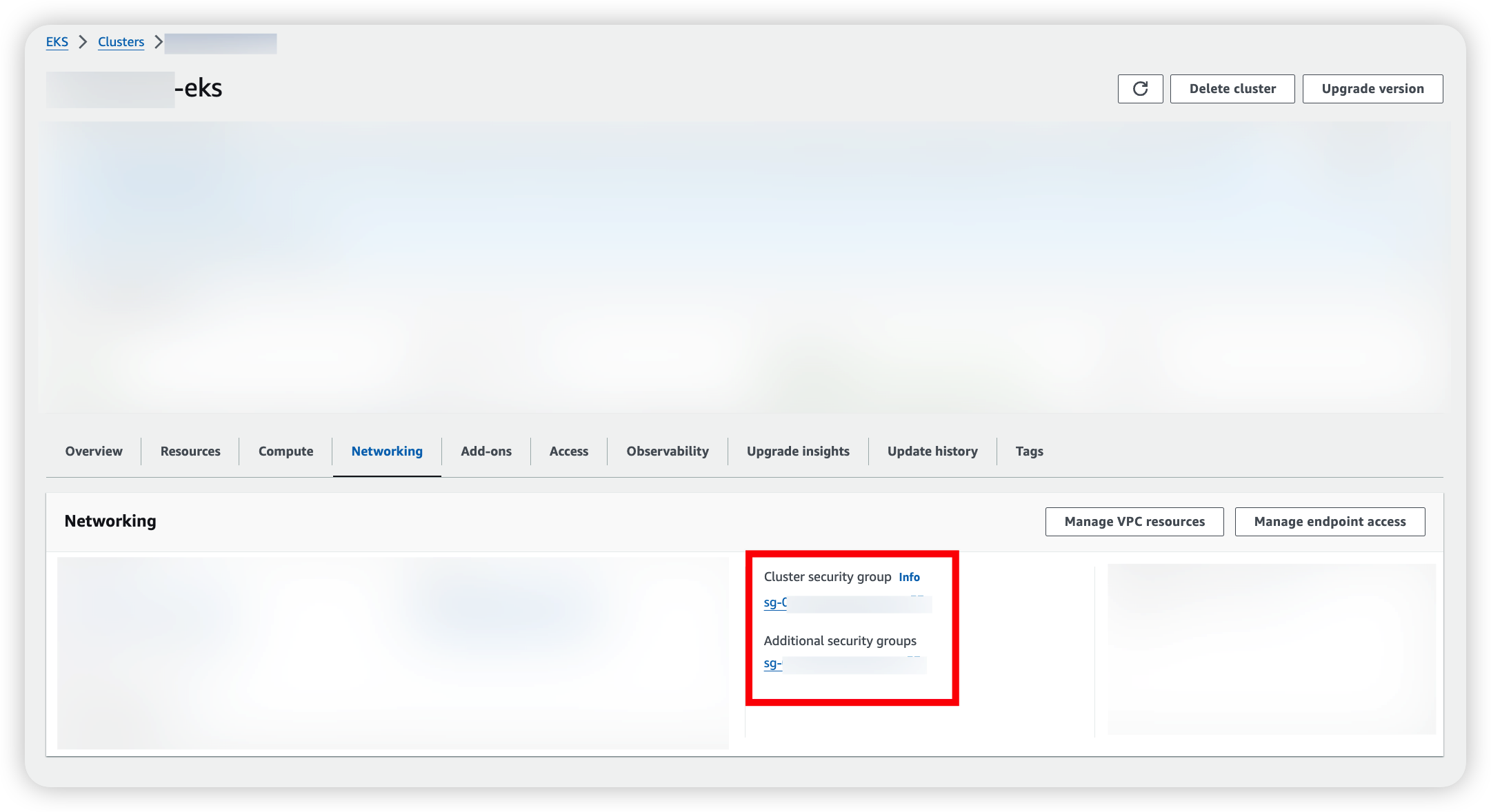 -> 클러스터 보안그룹과 추가 보안그룹의 역할이 다르다는 것을 인지 후 aws support에 문의를 올려보았다.
