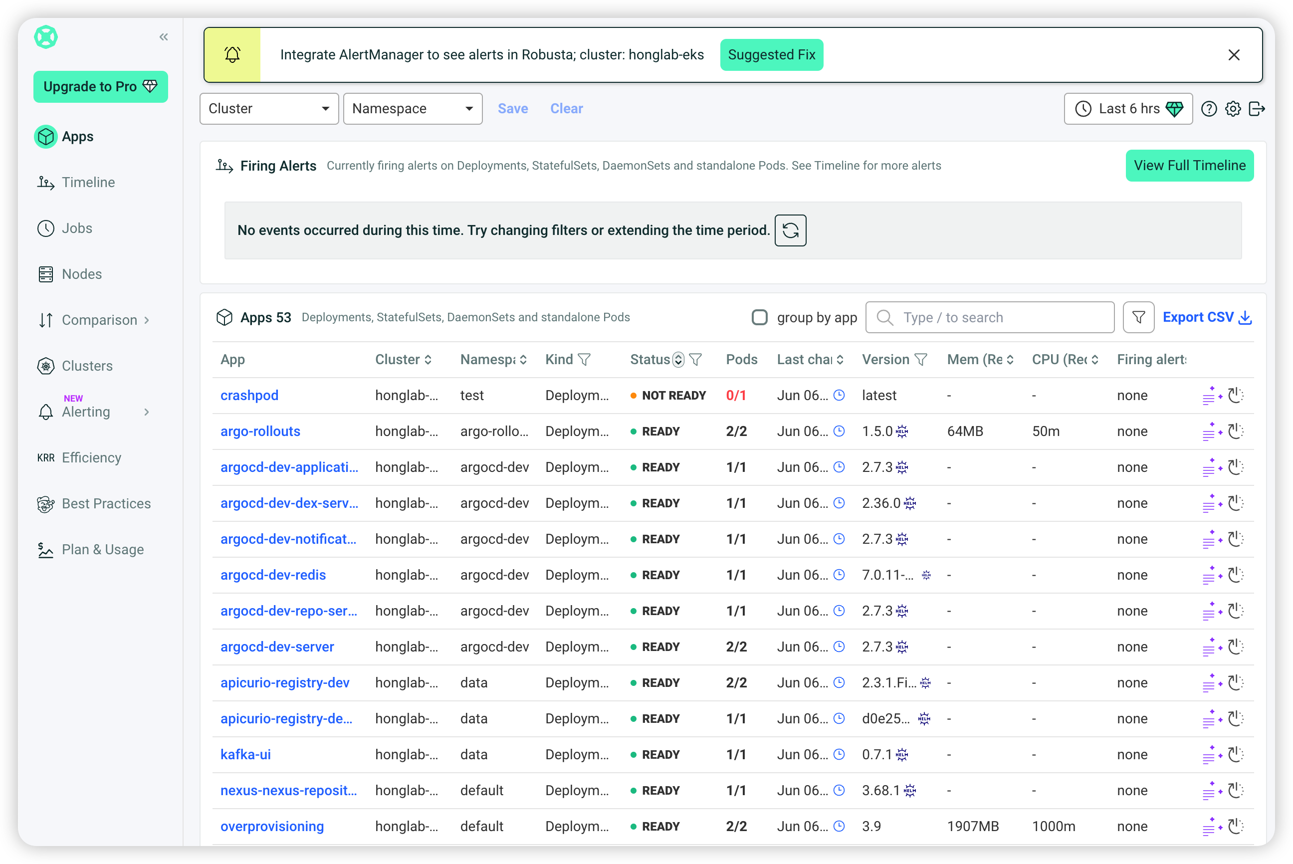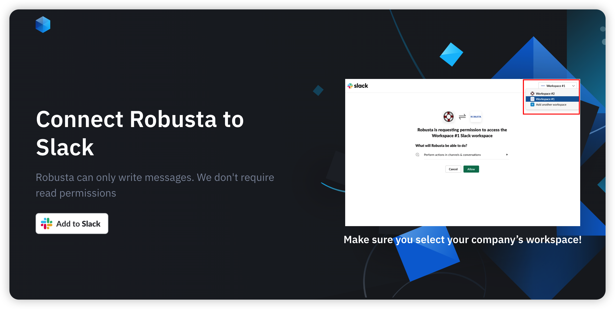 Finish installing with Helm (see the Robusta docs). Then login to Robusta UI at https://platform.robusta.dev