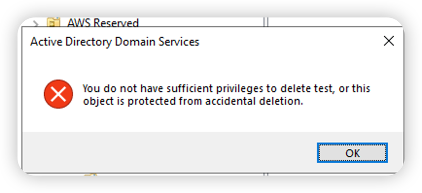 You do not have sufficient privileges to delete <object>, or this object is protected from accidental deletion.