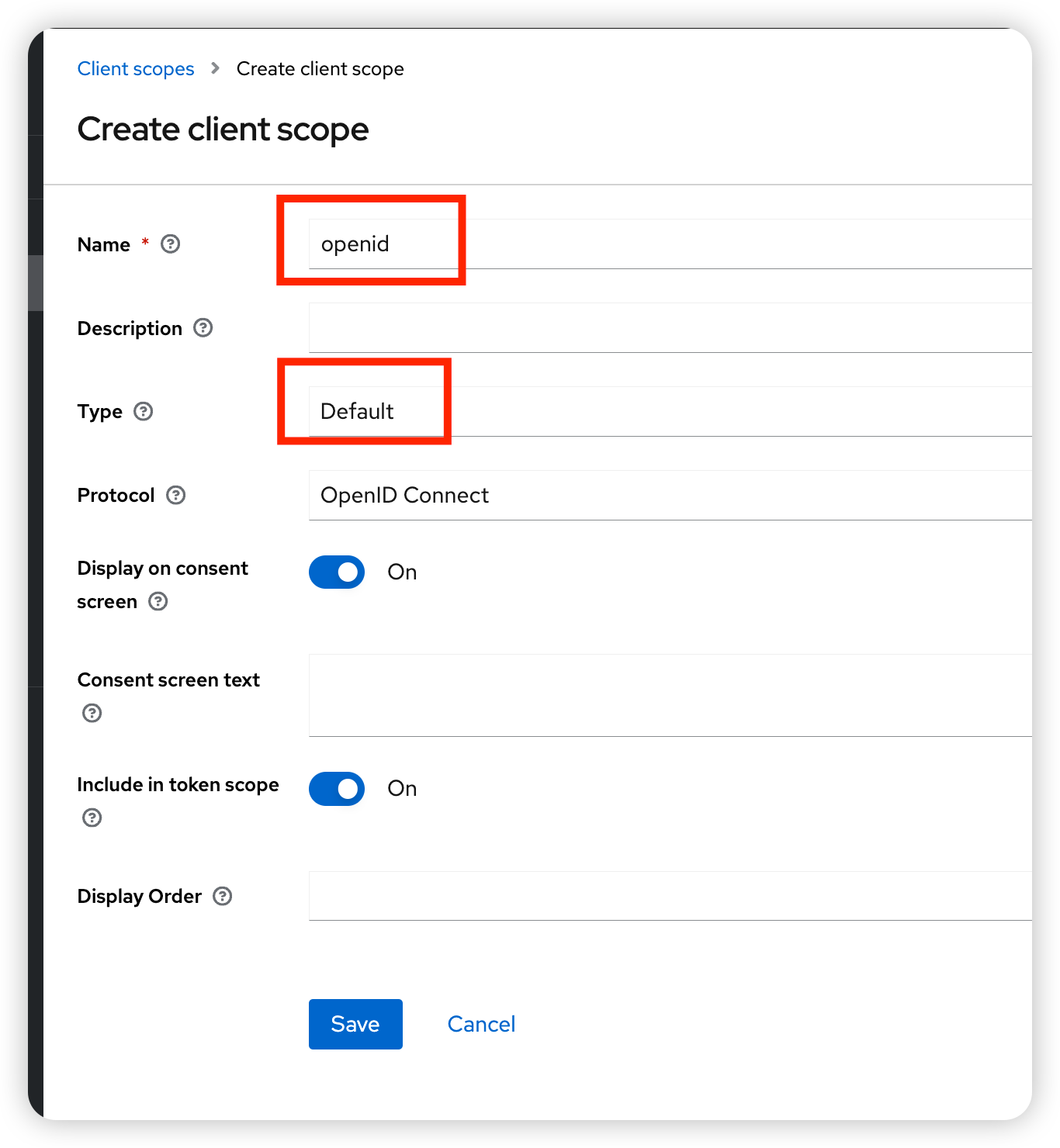 openid 란 이름으로 Default OpenID Connect scope 생성