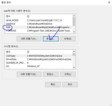 이제 환경 변수를 편집해야 한다