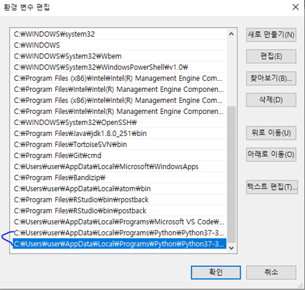 이 경로들을 환경 변수에 넣어줘야 한다