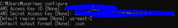 이제 다시 cmd로 돌아와서, aws 설정을 해주자