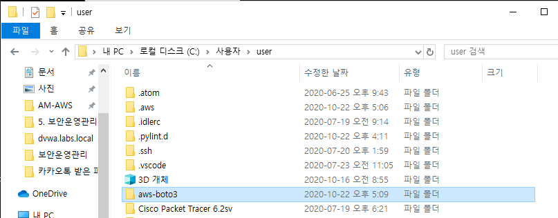 aws를 다운받은 경로에 폴더 하나를 만들어보자