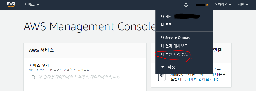 aws console >> 내 보안 자격 증명