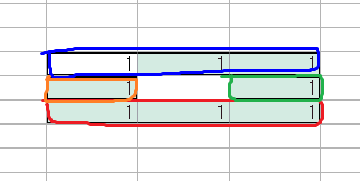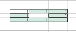 선택된 셀 주위로 1이란 값이 들어간 걸 확인할 수 있다