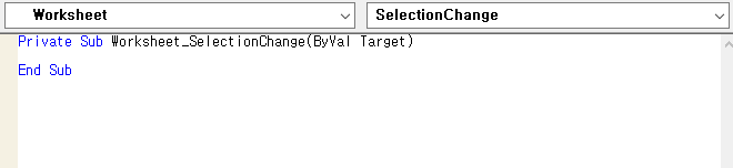 (일반) 메뉴에서 Worksheet, (선언) 메뉴에서 SelectionChange를 선택해준다