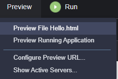 Run 버튼의 옆에 있는 Preview > Preview File Hello.html을 눌러보자