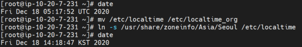 ln -s /usr/share/zoneinfo/Asia/Seoul /etc/localtime