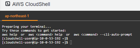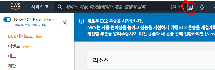 검색창 옆의 아이콘을 눌러도 바로 CloudShell로 들어갈 수 있다