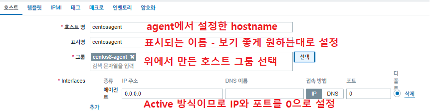 필수는 아니지만, 여러 호스트를 사용하게 될 때 헷갈리지 않게 하기 위함이며 zabbix 서버에다가도 같은 이름으로 등록할 예정이다