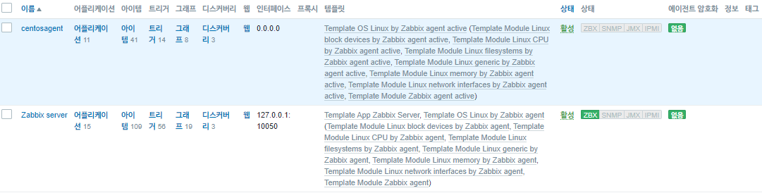 Active 방식은 원래 상태바의 ZBX에 초록불이 안들어온다고 한다