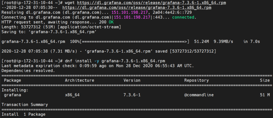 dnf install -y grafana-7.3.6-1.x86_64.rpm