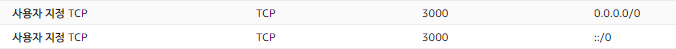 AWS console로 돌아가, 보안그룹에 TCP/3000 포트를 허용하는 인바운드 규칙을 추가해준다