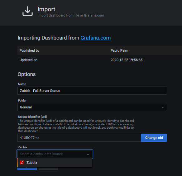 zabbix - zabbix를 선택해준 후 Import를 누르면
