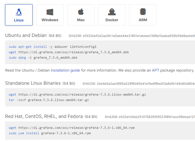 wget https://dl.grafana.com/oss/release/grafana-7.3.6-1.x86_64.rpm