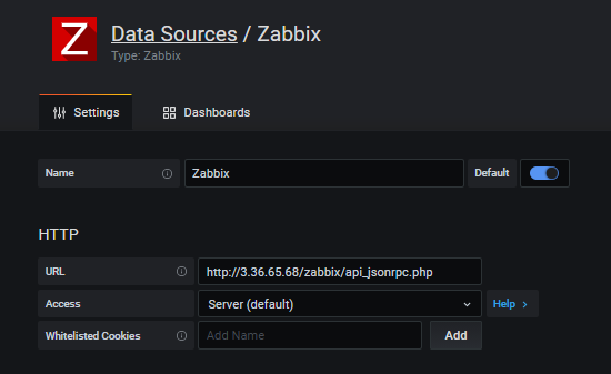 HTTP/URL - http://서버IP/zabbix/api_jsonrpc.php