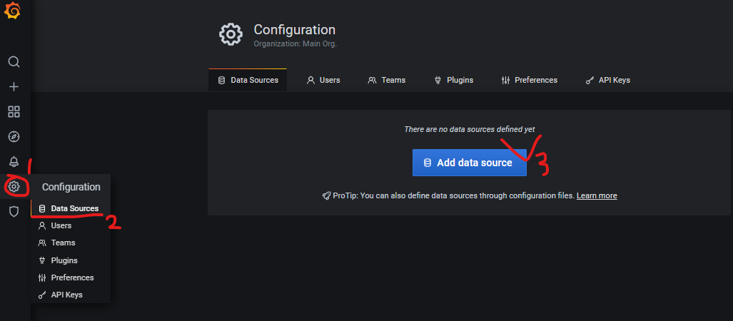 설정 > Data Sources > Add data source를 눌러준다