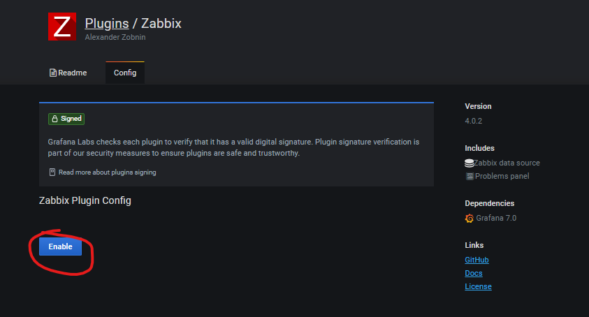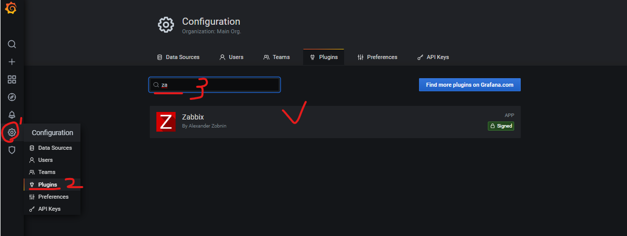 설정 > Plugins 로 들어간 후 zabbix를 검색해보면 플러그인이 이미 있는걸 확인할 수 있다 (아까 플러그인 설치했음)