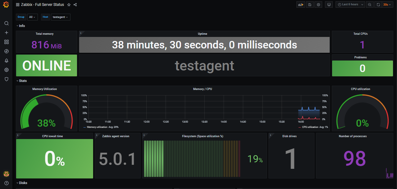 다운받은 대시보드로 내 자빅스 서버의 데이터들이 보여지는걸 확인할 수 있다