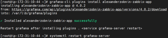 마지막으로 자빅스 플러그인을 설치해준 후 grafana-server를 재시작해준다