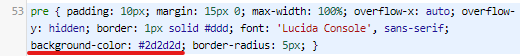 pre { padding: 10px; margin: 15px 0; max-width: 100%; overflow-x: auto; overflow-y: hidden; border: 1px solid #ddd; font: 'Lucida Console', sans-serif; background-color: #2d2d2d; border-radius: 5px; }