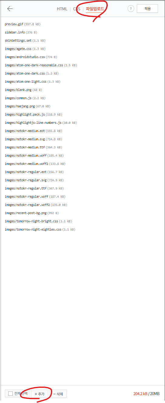 여기서 내가 골라둔 테마를 찾아 티스토리에 업로드해준다