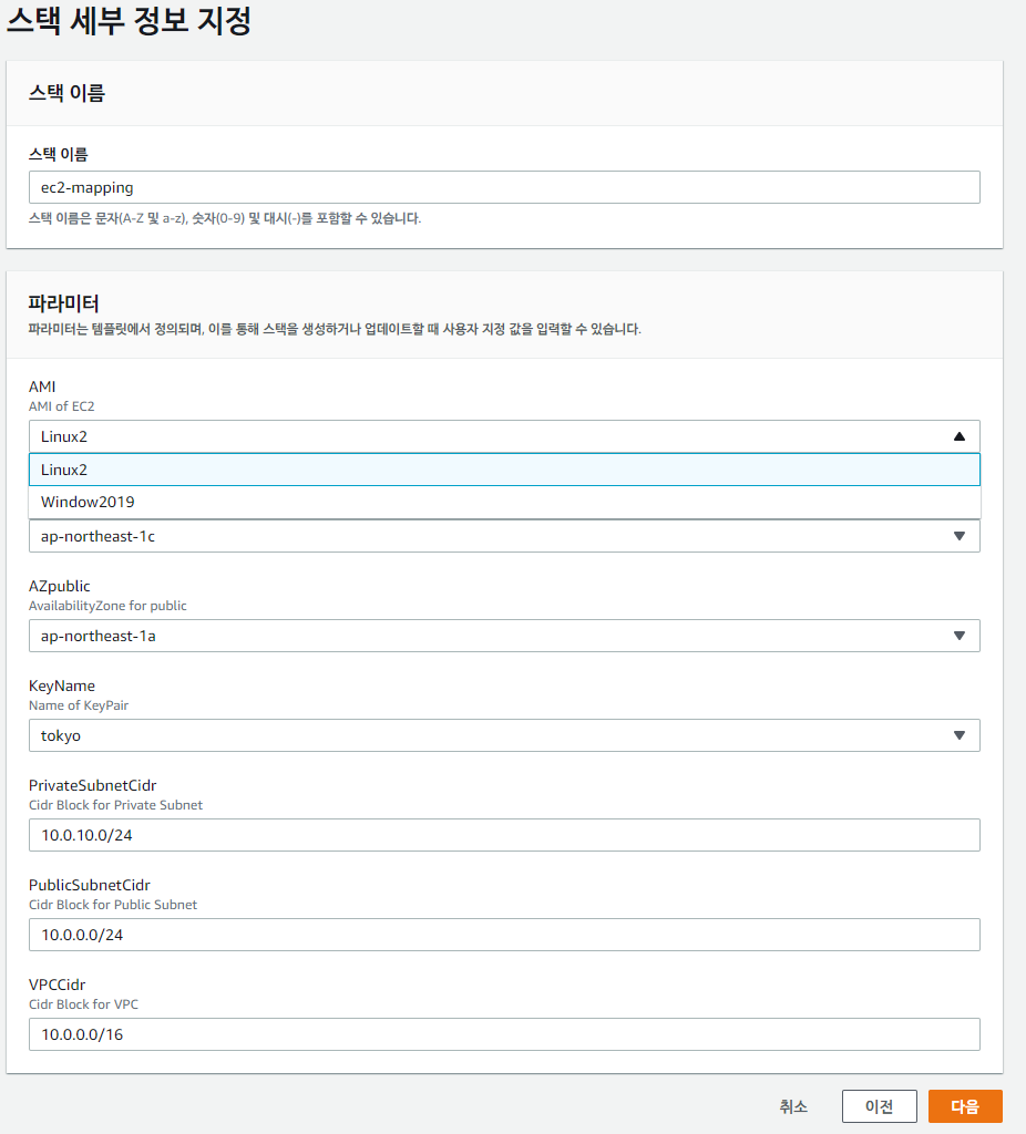 이번엔 매핑을 사용해 Linux2 또는 Windows 2019 Base 둘 중 하나를 선택하면 해당 리전에 맞는 ami가 자동으로 설정되도록 해보겠다