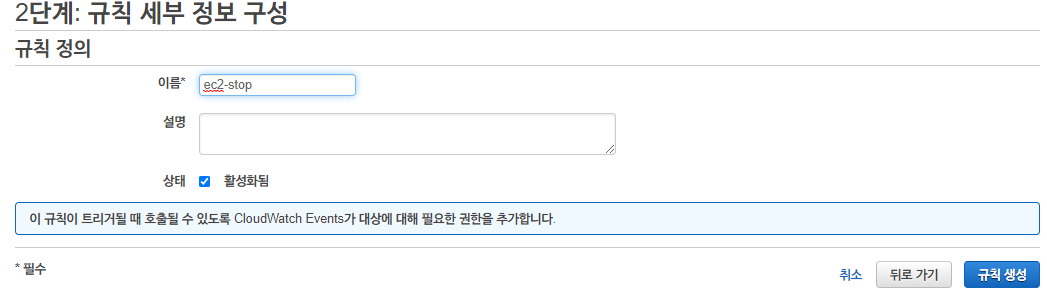 CloudWatch > 이벤트 > 규칙 > 규칙 생성