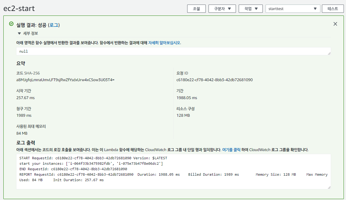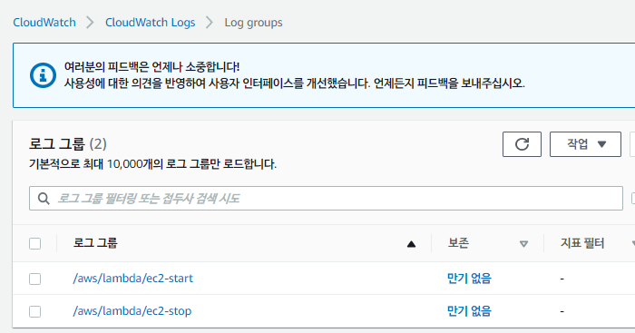 CloudWatch의 로그 > 로그 그룹으로 들어가보면 함수가 트리거될 때 작성된 로그도 확인할 수 있다